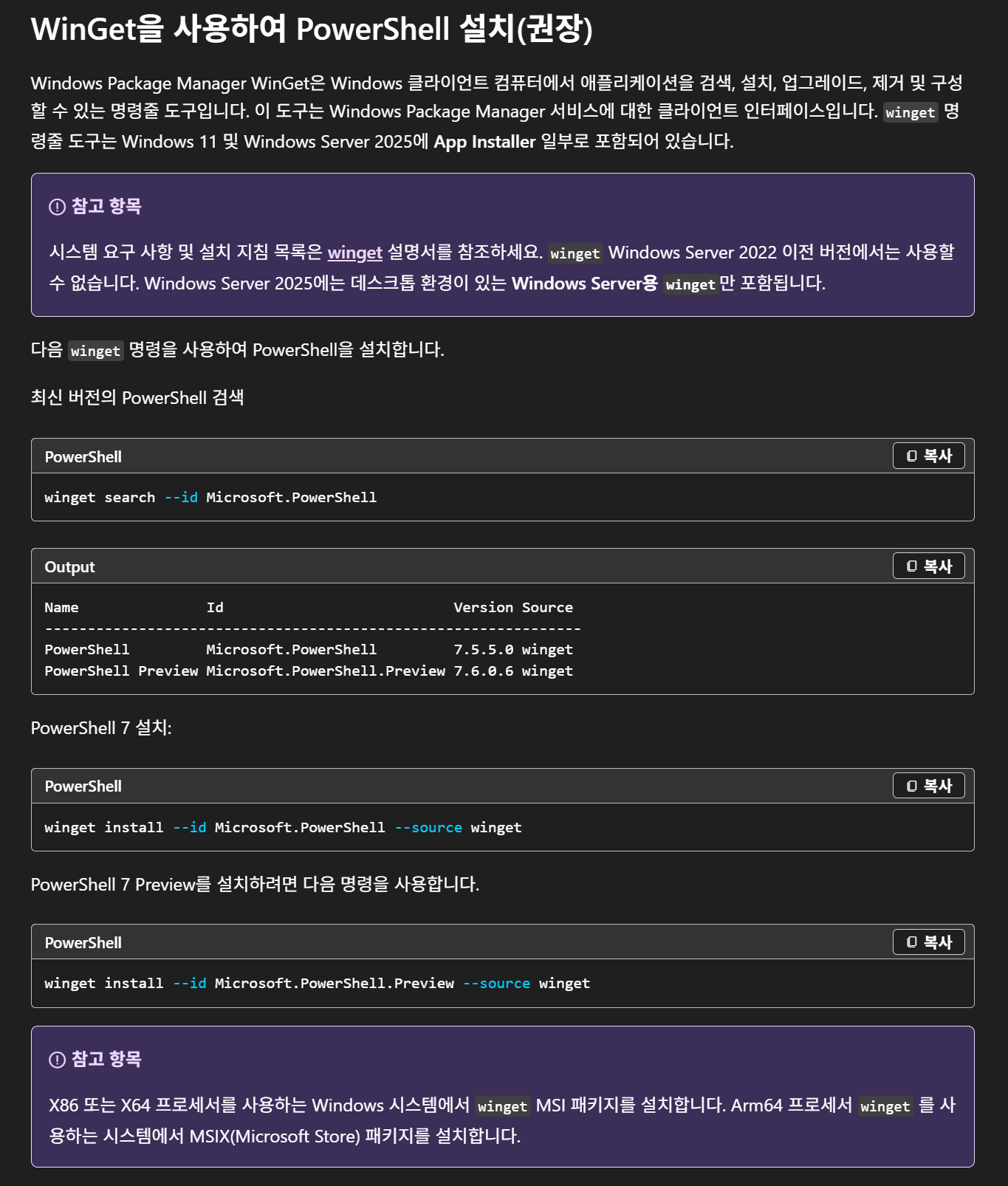 참고로, 이 튜토리얼에서는 PowerShell 7로 업그레이드한 환경을 기준으로 설명합니다. 기본 Windows PowerShell로도 진행 가능하지만, 최신 버전 사용이 저는 더 원활했습니다.