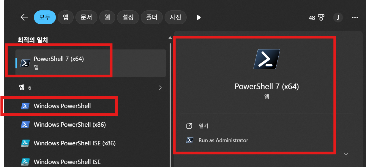 - PowerShell 관리자 권한 실행